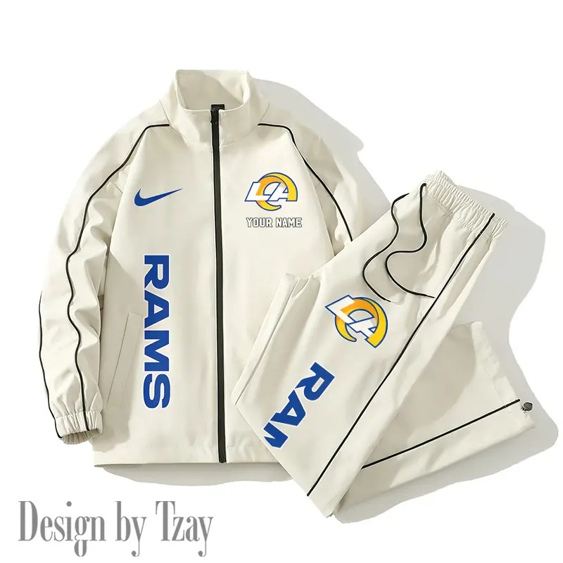 Hi there!! Are you looking at our Los Angeles Rams Sport Set Jacket & Pants. These Sport Set Jacket & Pants are unique, made with love, and they are perfect accessories for your outfit. The Los Angeles Rams Emblem on the shoes makes it a perfect item for any Los Angeles Rams Lovers.